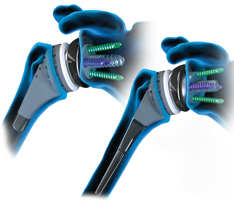 In contrast, reverse total shoulder arthroplasty is used when the rotator cuff muscles are severely damaged or torn, which can compromise the effectiveness of anatomic replacement. This procedure involves reversing the normal shoulder mechanics by placing a metal ball on the shoulder blade (glenoid) and a plastic socket on the end of the humerus. The reversed design changes the center of rotation of the shoulder joint, enhancing stability and leveraging the deltoid muscle to lift and move the arm. This modification helps compensate for the loss of rotator cuff function and is particularly beneficial for patients with severe rotator cuff tears or complex shoulder arthritis. Reverse total shoulder arthroplasty aims to improve arm function and alleviate pain in conditions where traditional anatomic replacement might not be effective.